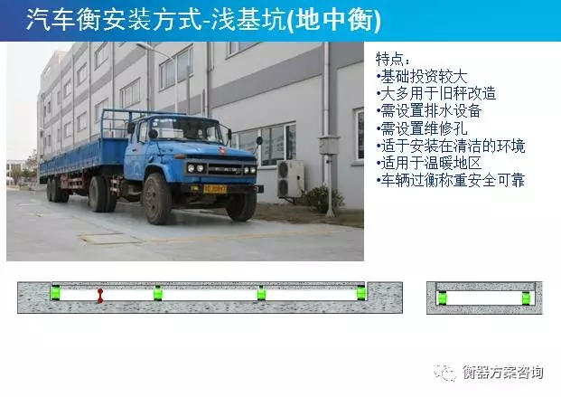 淺基坑是指汽車(chē)衡安裝在基坑里,秤臺(tái)表面與地面相平的安裝方式;